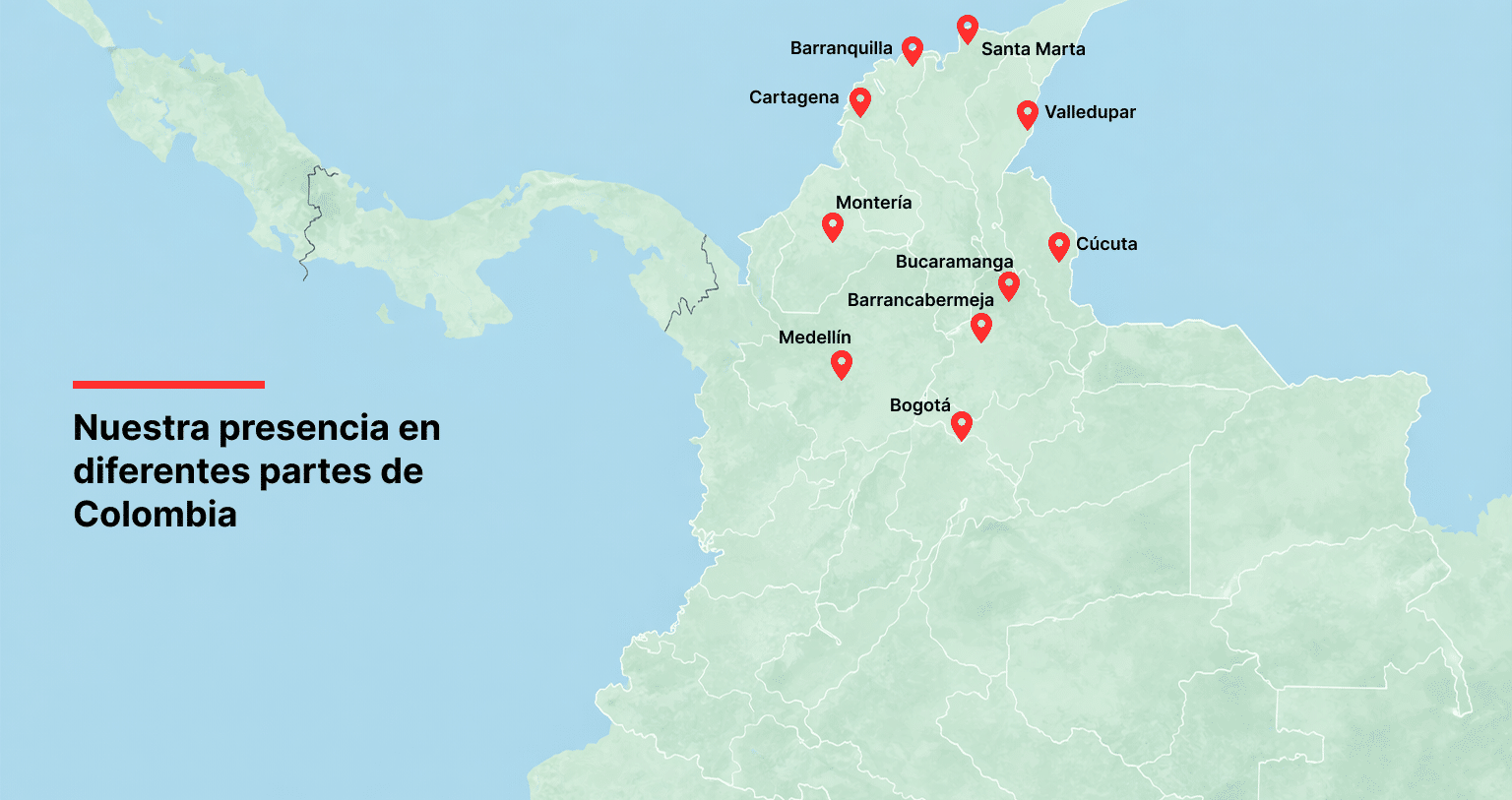 Jimenez & Herrera Asociados posee cobertura nacional y tiene presencia permanente en los departamentos de Santander, Norte de Santander, Cersar, Atlantico, Magdalena, Bolivar, Cundinamarca y Antioquia.
